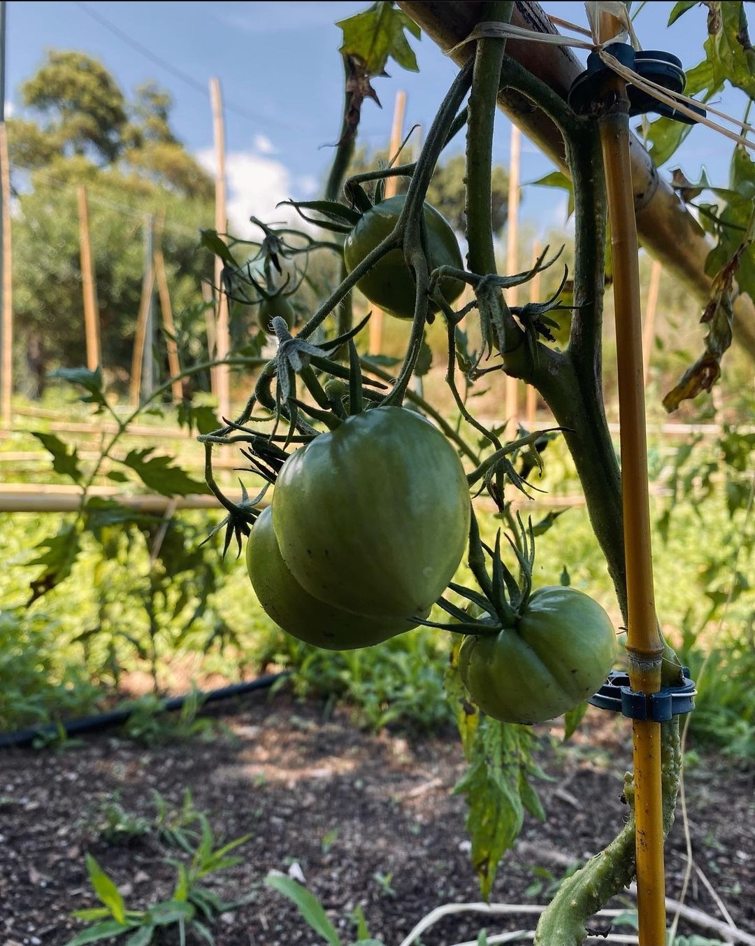 Vous trouverez de nombreuses variétés de tomates, courgettes, aubergines, pastèques, concombres, salades, … de mars à juin.